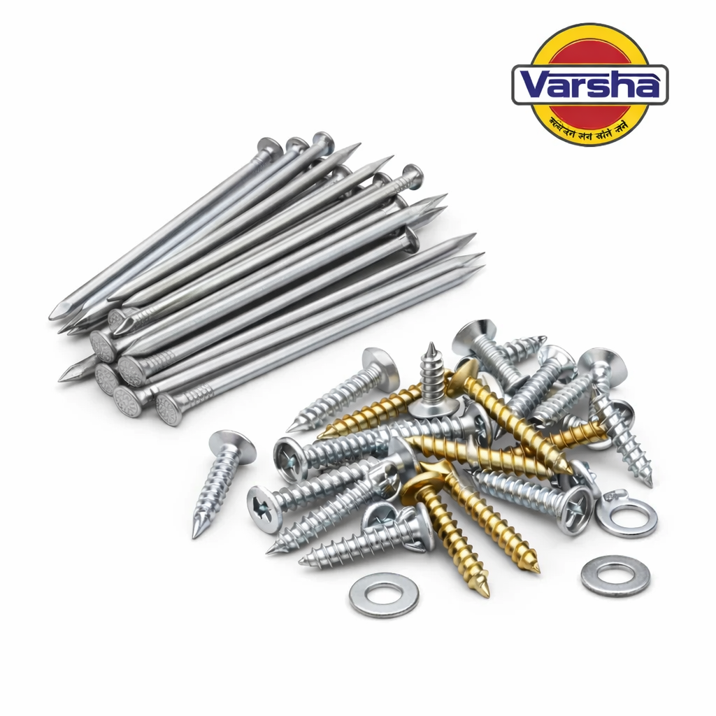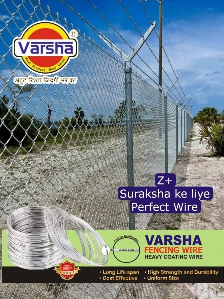 Explore VARSHA’s complete range of wire and fencing products—GI Wire, Binding Wire, MS/GI Nails, Chainlink Fence, Barbed Wire, Weldmesh, Roofing Screws, Nuts & Bolts and more—manufactured with strict quality checks for strong grip, clean finish, and long-lasting outdoor performance.
